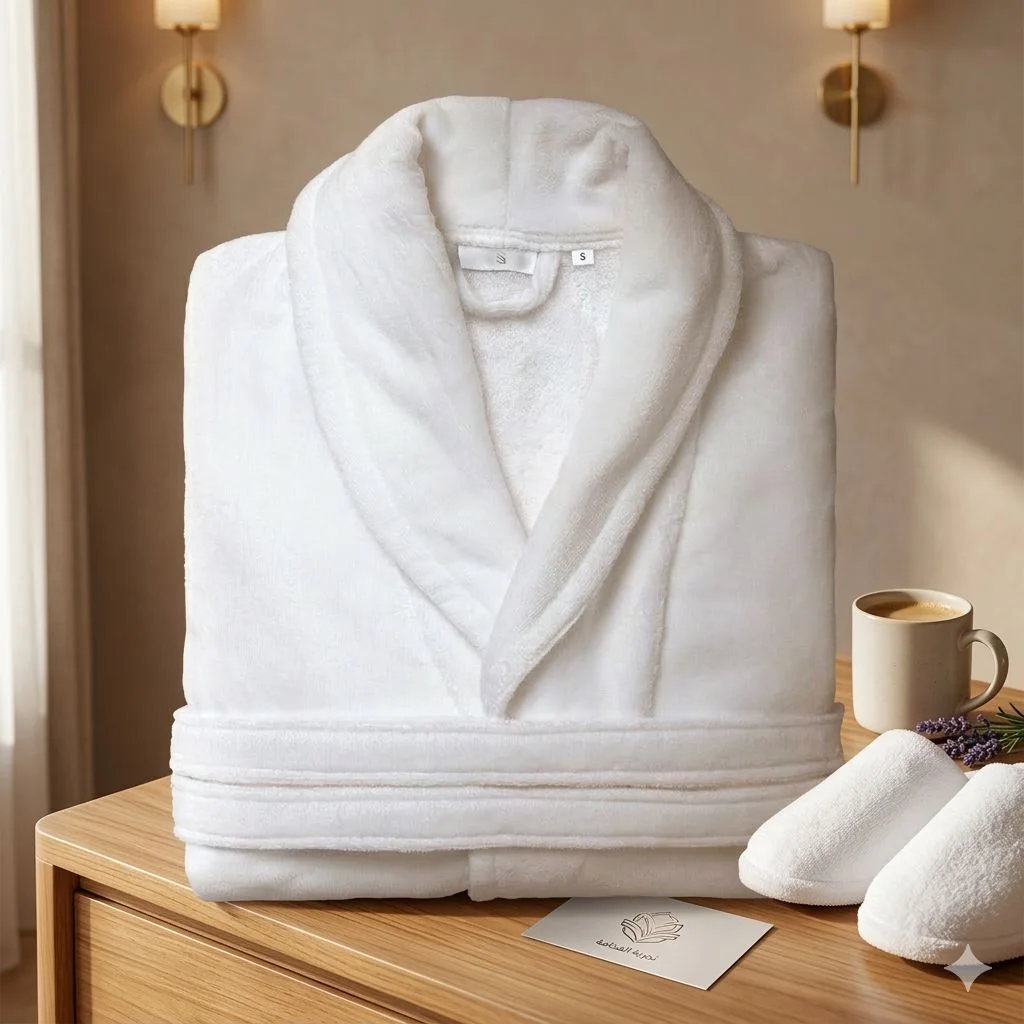 pack 5 pcs complet blanche ( Peignoir de bain + 3 serviette de bain + pantof)